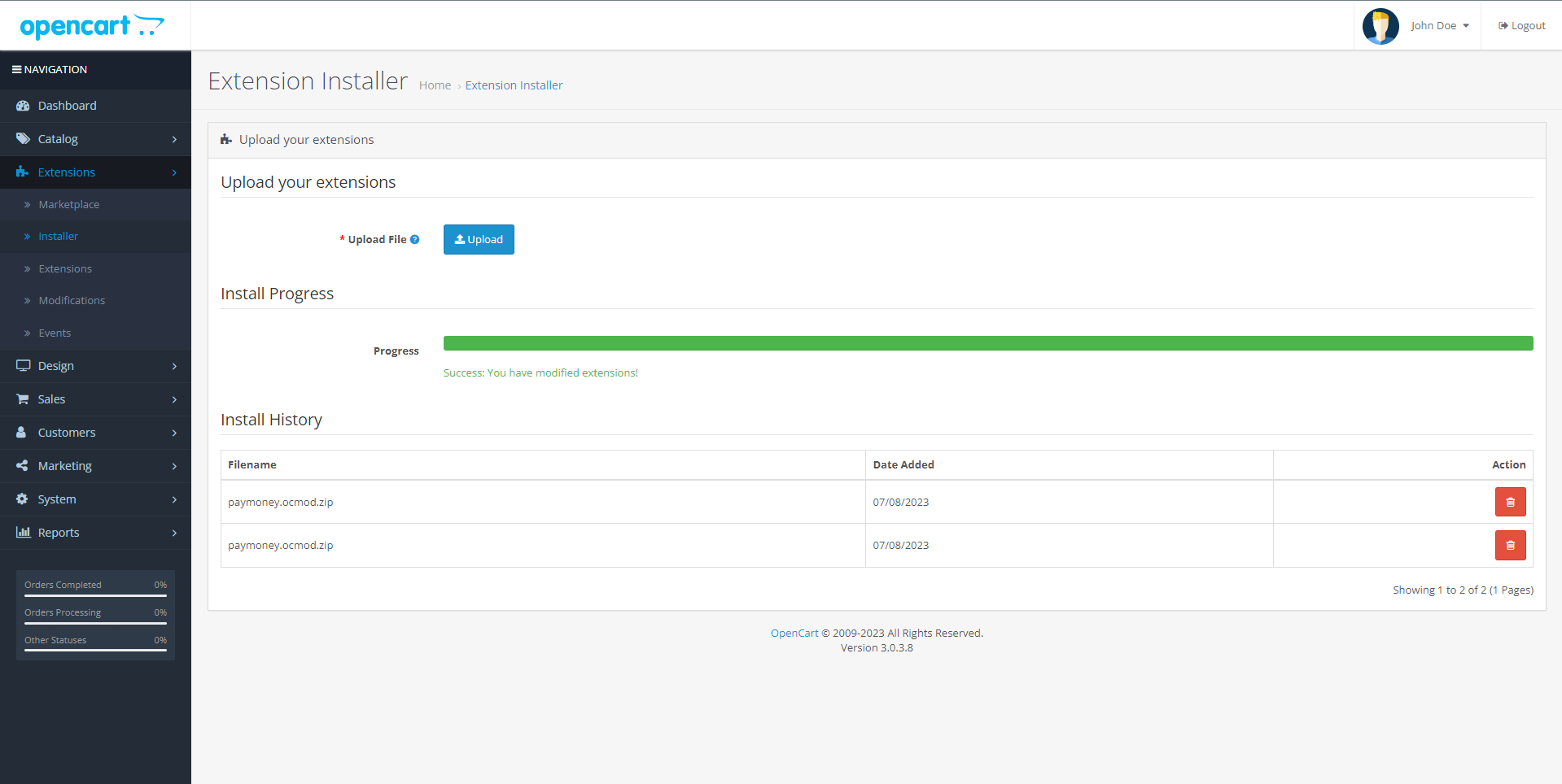 To install Opencart Extension in your admin panel, visit Extentions >> Installer and upload the downloaded linqpay.ocmod.zip