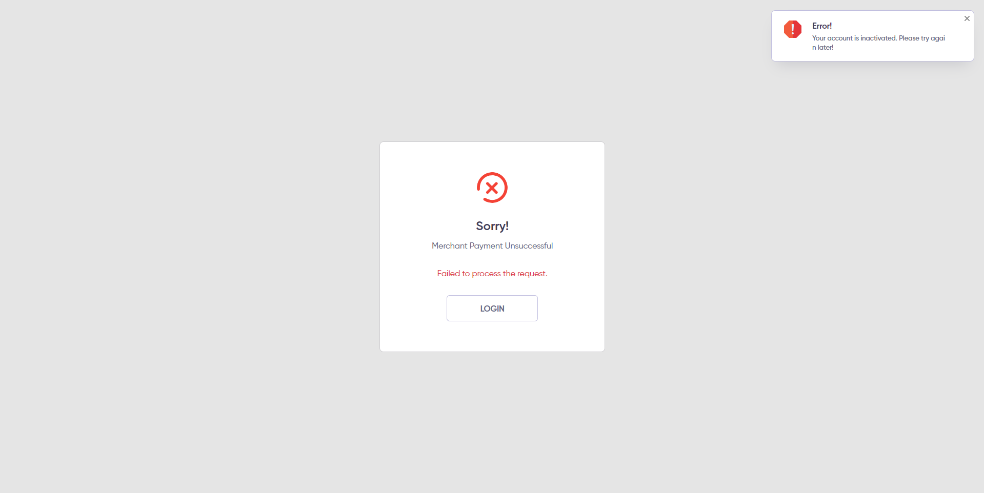 If the payment is Failed, the system show a error message with proper reason.