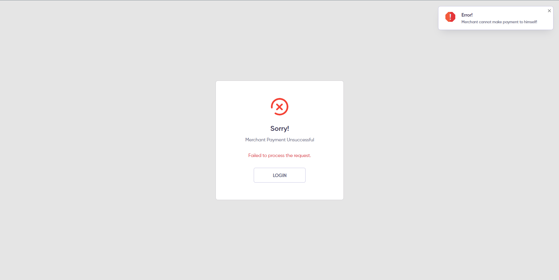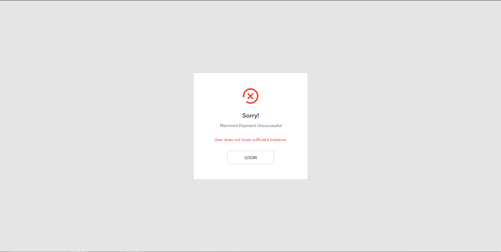 Note: If merchant credentials are incorrectly configured, the user will receive this error message.